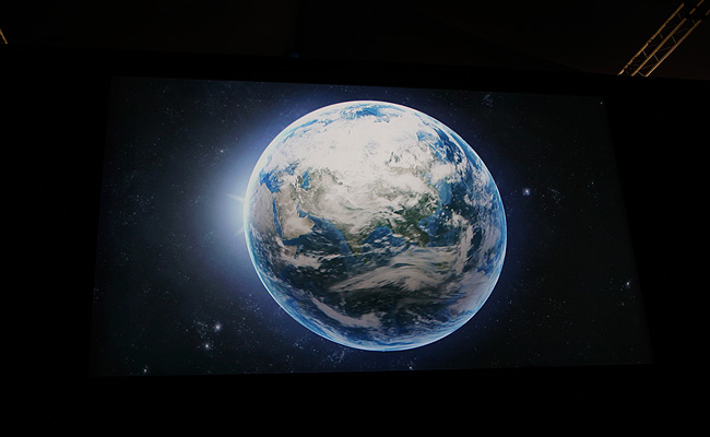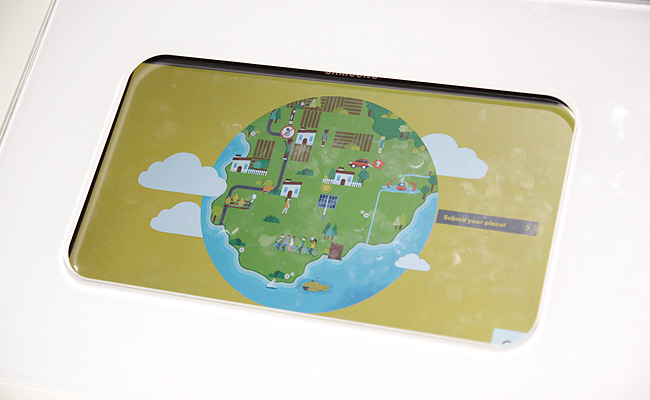 After walking through the exhibit, visitors answer the question "What will your world look like in 2050?" by controlling the flow of resources and energy in their own virtual world, with their choices resulting in infographics that depict what their world would look like in 2050.