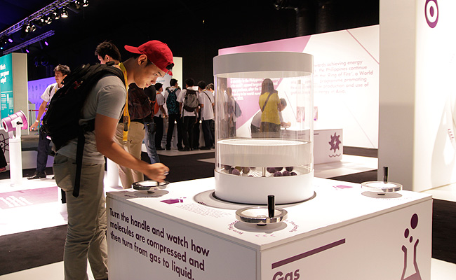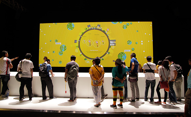 A visit to the exhibit starts with The World Now And In 2050 film viewing, which sets the tone for the interactive activities in the venue, highlighting the rising demand for energy, water and food to feed the Earth's population by 2050.