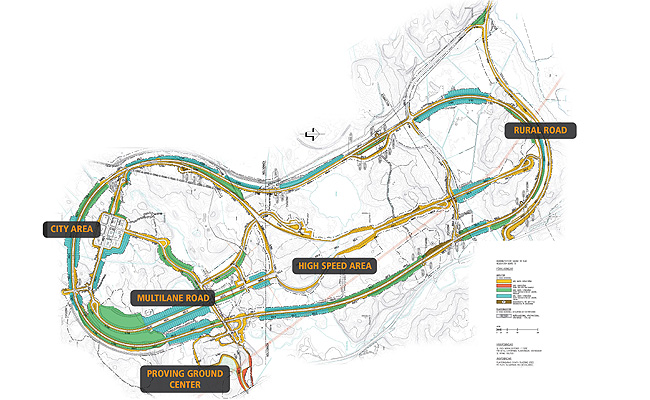 The second is a city area that will be used to test a vehicle's capacity for avoiding buses, cyclists, pedestrians or other road users. It also has a road system with different kinds of test environments such as roundabouts and T-junctions.