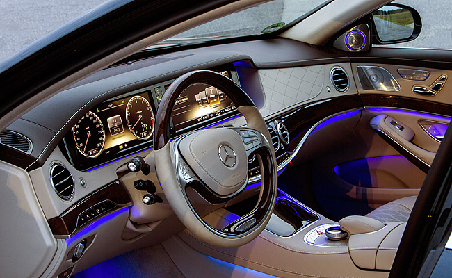 As for the S550, its cabin supposedly exudes "richness and style for the tech-savvy driver without being intimidating." The German carmaker's flagship sedan also has a raft of features that only add to its luxuriousness, like the hot-stone massage treatment, built-in pillows for the reclining rear seats, perforated leather, metallic-stained wood trim, and a "double-wide display screen about the size of a billboard."