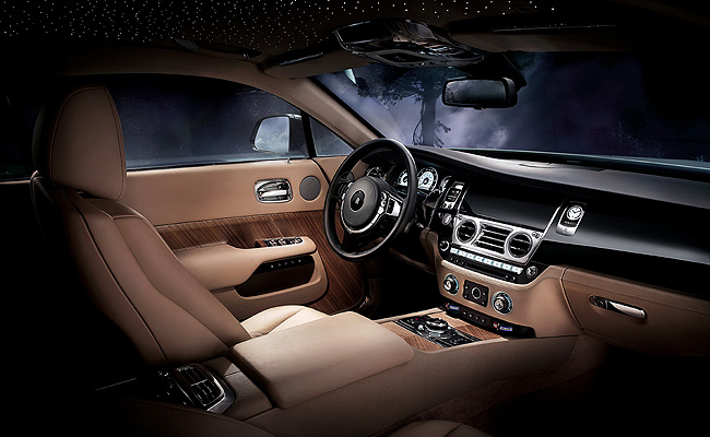 And then there’s the Wraith and its "high-octane youthful energy" with its rear-hinged suicide doors, Canadel wood paneling, trimmed leather seats, lamb's wool floor mats, monogrammed headrests, and fiber-optic headliner.