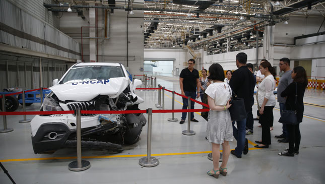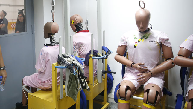 After the discussion, we were guided through a well-lit and very clean safety lab with various crash test equipment and cameras. Here, our guide explained, they can simulate different kinds of collisions so that they can later examine the damage and impact to the dummies, and pinpoint parts of the car that need improvement. Crash blocks weighing tons were lined up against the wall in the area. Catapult-like equipment were also parked here. We even entered an eerily cold room that resembled a hospital emergency ward, complete with crash test dummies (male, female and even babies) dressed in what looked like hospital garb.