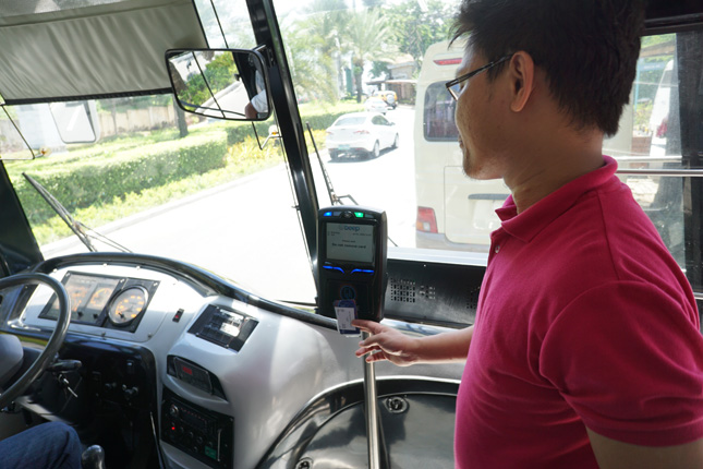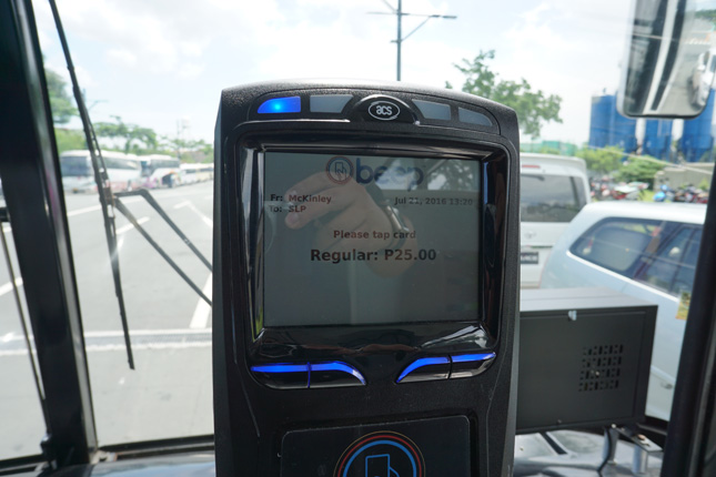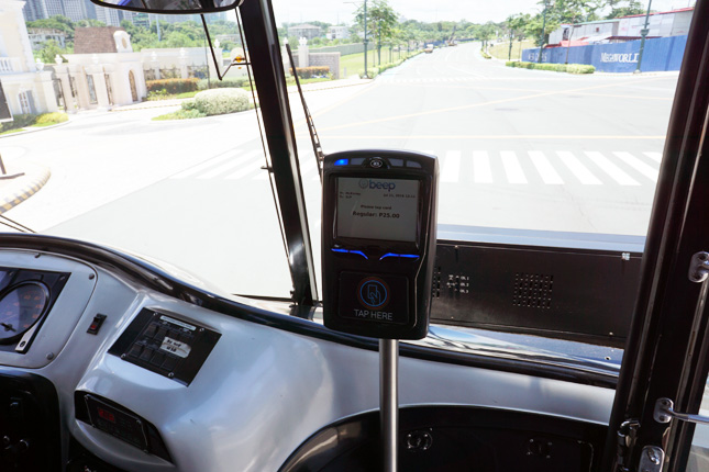 The Beep card is fast and seamless. It can be purchased and reloaded via vending machines and booths near the bus stops. Commuters just tap the credit-card-sized plastic on the receptacle next to the driver, and the amount is immediately debited from the rider. It even shows the value left in the Beep card. It worked perfectly when we tried it ourselves.