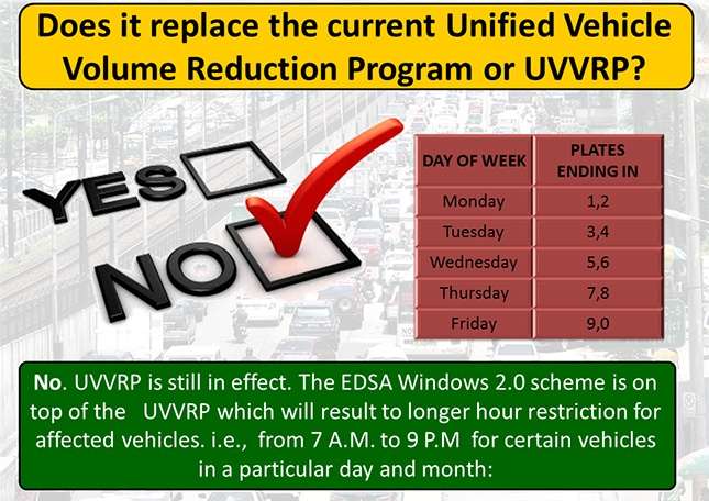 According to the MMDA, it is still just floating the idea and gauging the public's reaction to it. It is currently consulting other concerned government agencies regarding the matter and has been given one month to fine-tune the proposal. Will this lead to less traffic, or only more confusion?