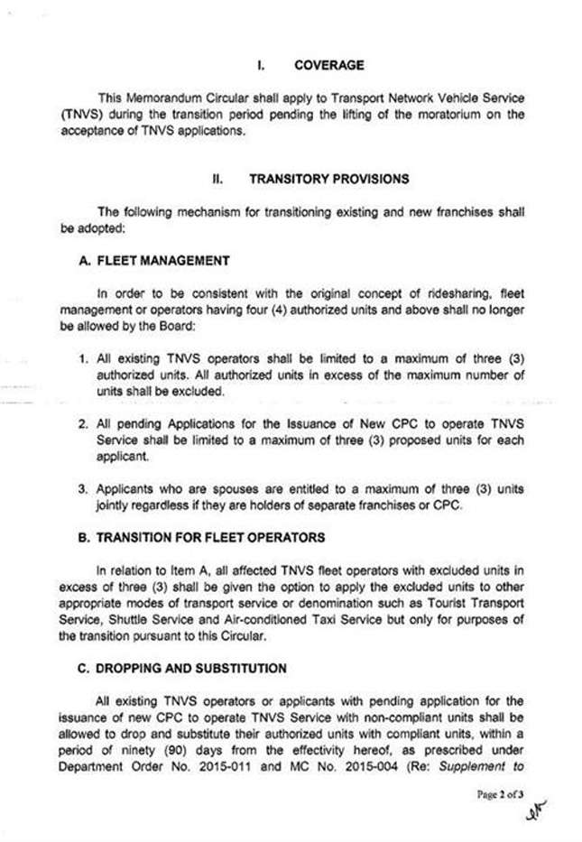 1. All existing TNVS operators shall be limited to a maximum of three authorized units. All authorized units in excess of the maximum number of units shall be excluded.