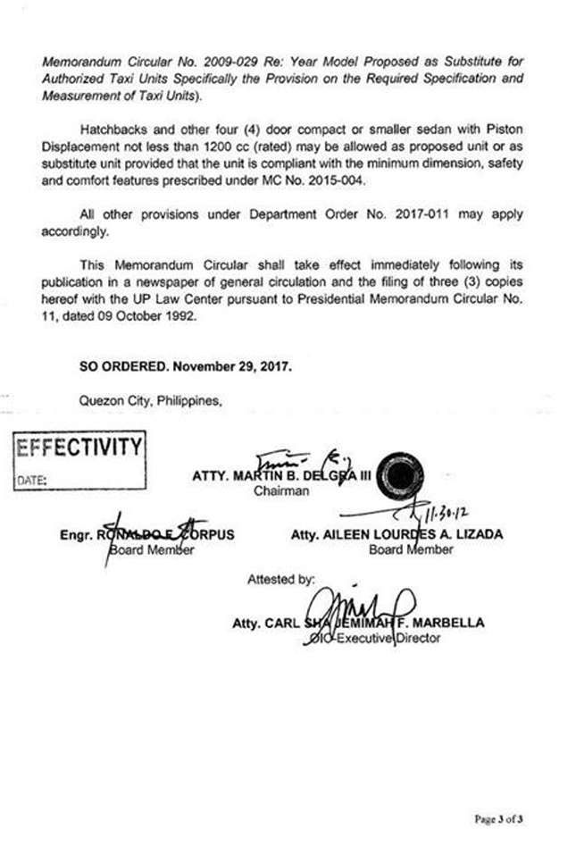 After a series of meetings and consultations with concerned parties since the agency suspended the acceptance of TNVS applications, the LTFRB board has ordered that all TNVS operators will be limited to a maximum of only three vehicles. According to memorandum circular 2017-032, the move is in order for fleets to "be consistent with the original concept of ridesharing." Below are the guidelines for fleet management: