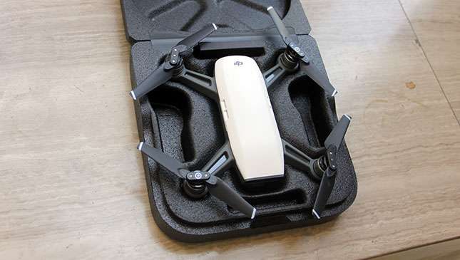 The Spark can also be used in a variety of flight modes: QuickShot lets users create a preset flight path, TapFly will send the drone to a location you tap on the screen, and ActiveTrack automatically recognizes and follows an object of your choosing. For us though, the most intriguing is Sport Mode—it sets the Spark's top speed to 50kph, sets the gimbal to a first-person view, and lets the drone move with you as you fly.