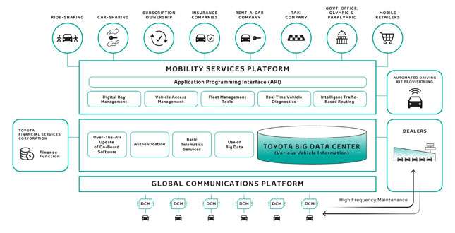 The executive adds that the e-Palette concept vehicle is a "demonstration of the company's continued expansion beyond traditional cars and trucks to the creation of new values including services for customers."