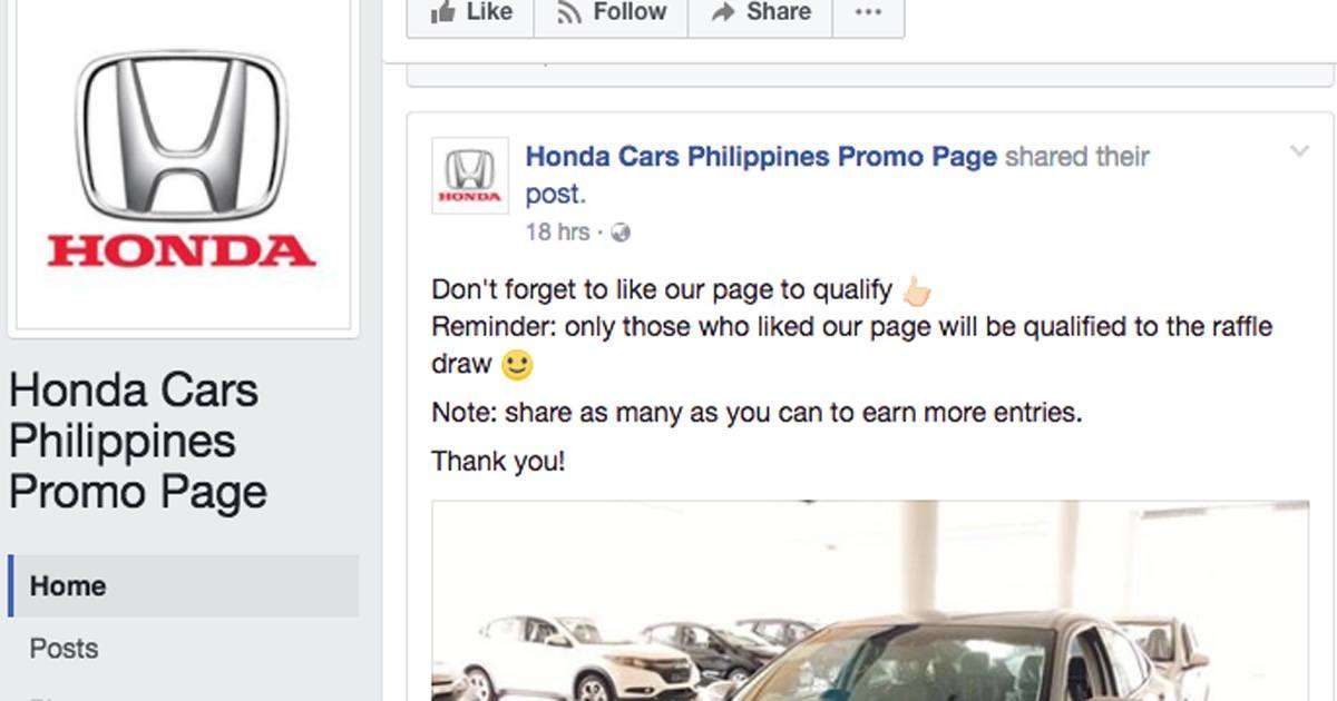 You've probably seen one or two of these dubious Facebook pages by now. A free Toyota Hiace Super Grandia if you like and share a post, or 10 Honda Civic RS Turbos if you like and share! An awesome turbocharged compact