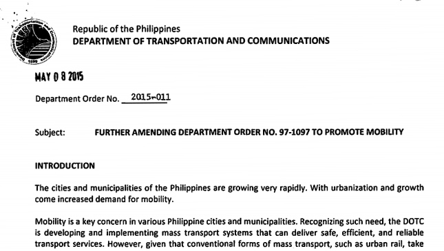 The Land Transportation Franchising and Regulatory Board has posted a memorandum on its website regarding implementing guidelines for the opening of a premium taxi service (PTS), just days after the agency had announced its ultimatum for unregistered Transportation Network Companies (TNC) such
