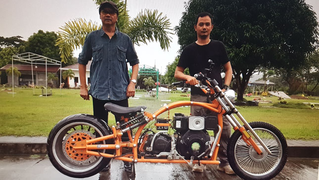 Borne out of his deep passion in building motorbikes, Rodel Venzon (the man on the left in top photo) never took his eyes off his unique cruiser that he painstakingly built for six months, along with his sons and brother Robert (top