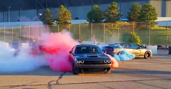 If you're viewing this on a mobile device and can't see the video, please click here.A colorful game of three-way tug of war. A Dodge Viper, Charger Hellcat, and Challenger put on an epic, smoke-filled display of