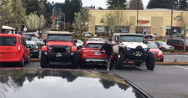 If you're viewing this on a mobile device and can't see the video, please click here.A pair of Jeeps teach a rude parker a lesson. We've all come across that one dude in the parking lot. You know,