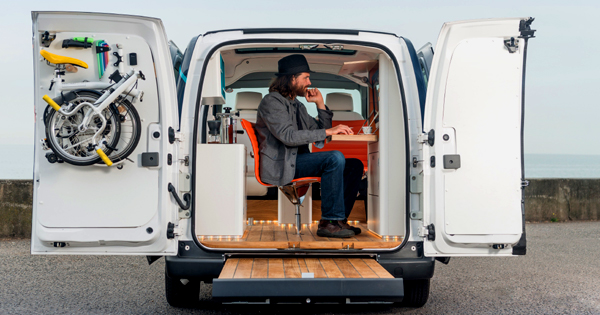 Is this the ultimate "on-the-go" vehicle? Nissan just unveiled an all-electric mobile office concept built around the company's zero-emission e-NV200 van. It's called the WORKSPACe, and man, does it look awesome or what.The van