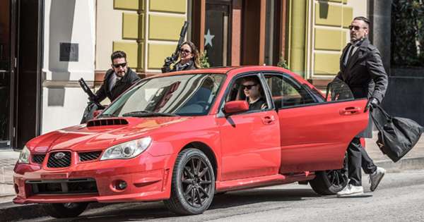 Cue the music. Our hero, Baby, sits in a cherry red Subaru Impreza WRX, waiting to spear off into the distance after a dastardly bank heist. He's got tinnitus from a childhood accident. He only works with earphones so the music
