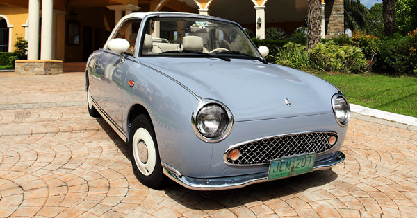 If a machine could be the manifestation of a good mood, this car would be it. You cannot look at it without smiling. It has the appeal of a puppy! This is a Nissan Figaro, built in 1991, based on the Micra,