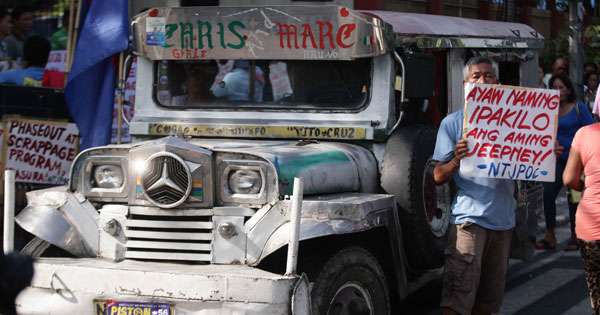 So you might've heard that the government has launched its PUV modernization program. What was interesting though is that on our way to cover the launch at Camp Aguinaldo, we spotted a group of jeepney drivers protesting the program just outside